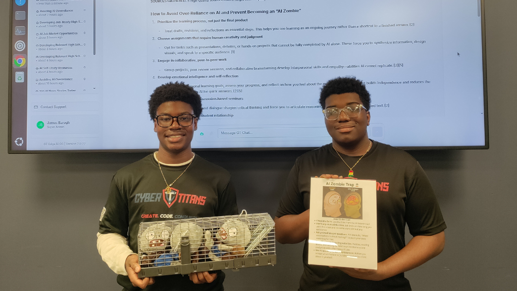 Cyberbytes Foundation and GT Edge AI partnered to deliver a week-long cyber career exploration program for middle and high-school students. Students used the GT Edge AI Academy platform to learn how to use Ai responsibly, develop personal growth & workplace skills development via internships and projects. Key items covered as well were the risks of developing “AI Zombie Syndrome” – cognitively offloading critical thinking to AI. The AI agents delivered on the GT Edge AI OS platform were specifically designed to foster critical thinking, problem solving, step by step explanations with effective safety guardrails.