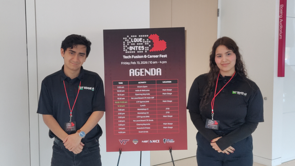 GT Edge AI was pleased to exhibit at Love Bytes 2026, held at Virginia Tech’s Academic Building One in Alexandria, VA, just two miles south of the Pentagon. Love Bytes was a Tech Fusion & Career Fest, and had a full day of programming centered around cybersecurity careers, skills, networking, and competition, hosted by Katzcy. The event was electric, with energy among the students, educators, and cyber professionals in attendance.